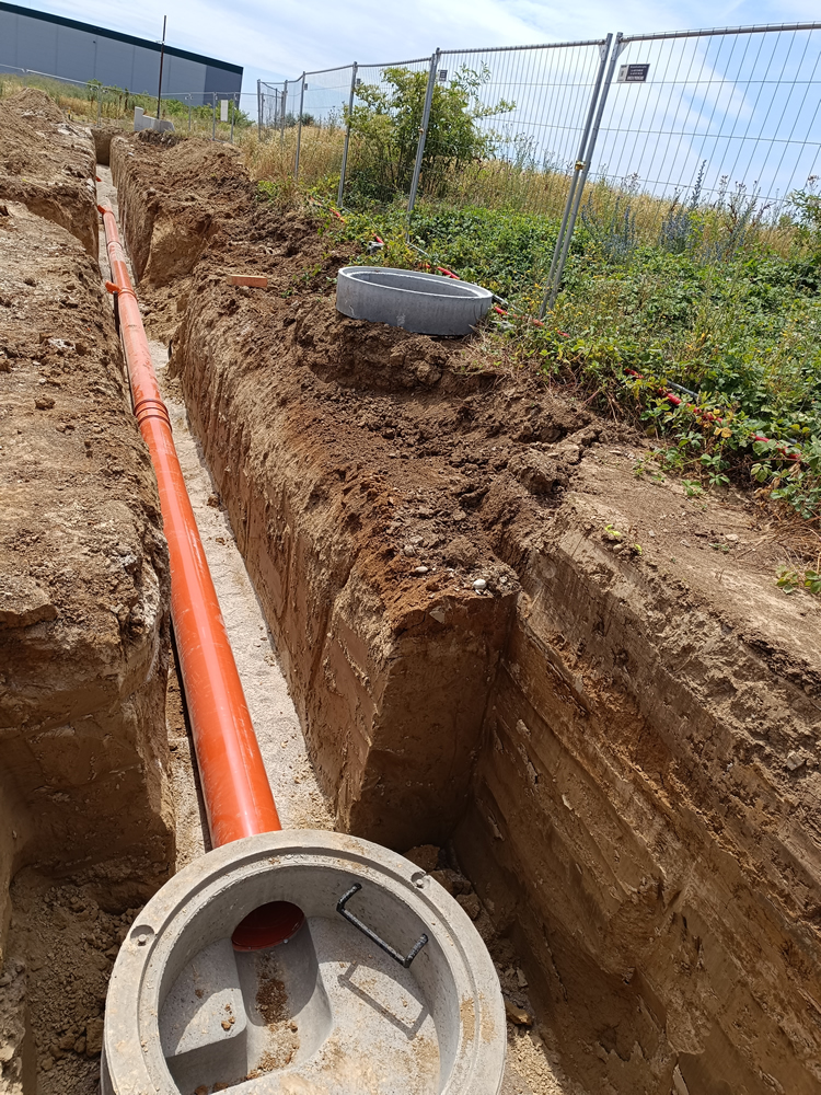 Kompletná realizácia kanalizačných prípojok a sietí vrátane výkopu, montáže potrubia a napojenia na existujúcu kanalizáciu.