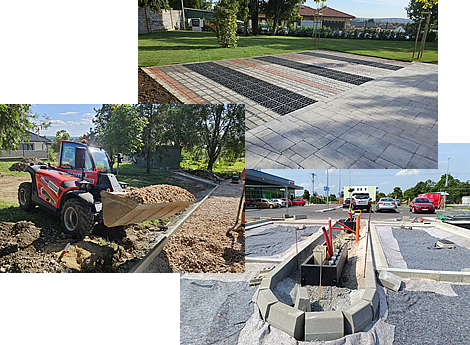 Realizujeme chodníky, terasy, príjazdové cesty, parkoviská aj firemné areály. Zabezpečujeme tiež osadenie obrubníkov, výkopové práce, montáž kanalizačných prípojok a výstavbu plotov rôznych typov.